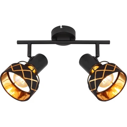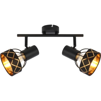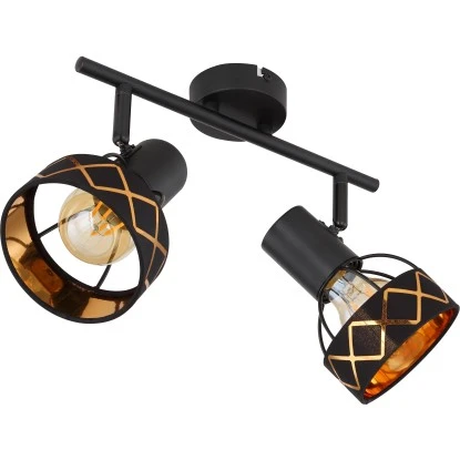 Dieser Zweierstrahler aus der Blanca-Serie ist eine wundervolle Ergänzung für Ihre Innenräume. Der 30 cm lange Strahler besteht aus einer schwarzen Metallstange, an der zwei E27-Fassungen fixiert sind. Diese verfügen über einen schwarzen Textilschirm, der innen golden getönt ist und ein linienförmiges Muster aufweist und können mit passenden Leuchtmitteln Ihrer Wahl bestückt werden, wodurch Sie die Möglichkeit haben, Lichtfarbe und Helligkeit individuell zu bestimmen. Durch weitere Artikel der gleichen Serie können Sie in Ihren vier Wänden für ein stilvolles Ambiente sorgen.