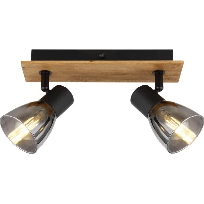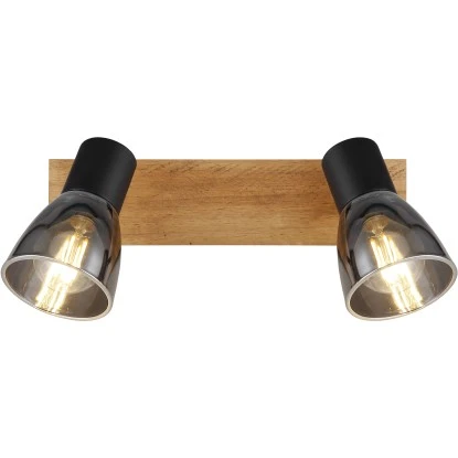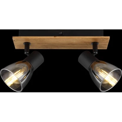 Dieser schöne Strahler der Claude Serie in schwarzen Metall und Holz begeistert durch tolles Design. An einer rechteckigen Deckenbefestigung mit Holzverzierungen(25×7 cm) befinden sich zwei E14 Fassung mit jeweils einem schönen Glasschirm in Rauchfarben (Ø7 cm). Geschaltet wird die Leuchte mittels ON/OFF Schalter. Die E14 Fassung überlässt Ihnen die Möglichkeit, bis zu einer maximalen Leistung von 40 Watt, selbst über Lichtfarbe und Helligkeit zu bestimmen. Mit weiteren Modellen dieser Serie können Sie Ihren Wohnbereich wundervoll ergänzen.