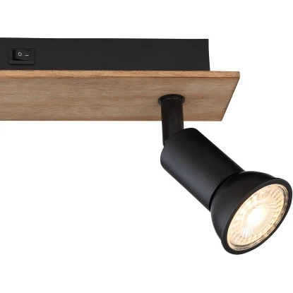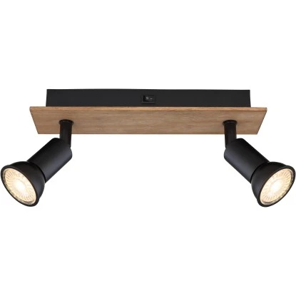 Dieser schlichte Deckenstrahler der Serie Drew besticht durch sein edles Design. Der aus Metall und Holz hergestellte schwenkbare Strahler ist mit zwei GU10 Fassungen ausgestattet und besitzt eine Länge von 25 cm. Durch die freie Wahl des Leuchtmittels können Sie selbst bis zu einer maximalen Leistung von 35 Watt über Lichtfarbe und Stärke bestimmen. Aufgrund ihrer Stromersparnis und Langlebigkeit empfehlen wir LED-Lampen.