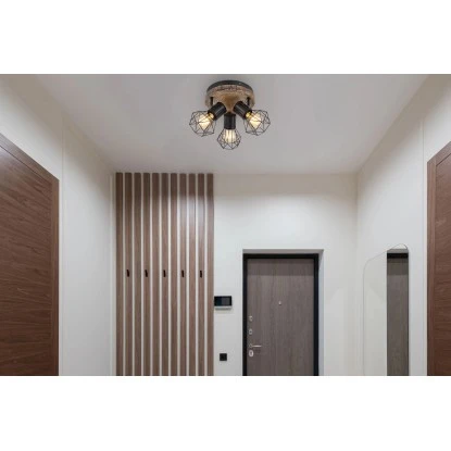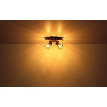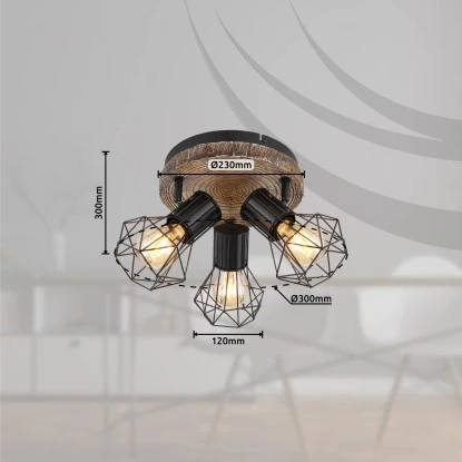Der Deckenstrahler aus der Serie Priska überzeugt mit seinem eleganten Design. Die drei beweglichen, an einem runden Sockel in Holzoptik befestigten, schwarzen diamantförmigen Metallgitter-Schirme sollten alle Blicke auf sich ziehen. Die Spots sind mit jeweils einer E27 Fassung ausgestattet, die es Ihnen ermöglichen das für Sie passende Leuchtmittel (max. 60W) selbst auszuwählen und damit Lichtfarbe und Lichtstärke zu bestimmen. Aufgrund ihrer Stromersparnis und Langlebigkeit empfehlen wir LED-Leuchtmittel. Mit weiteren Strahlern aus dieser Serie können Sie das Bild in Ihren vier Wänden komplettieren.