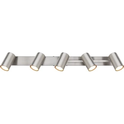Dieser wunderschöne Strahler begeistert durch tolles Design. An einer 70 cm langen Nickel matten Stange befinden sich zwei GU10 Fassungen mit beweglichen Gelenken und drei weiteren GU10 Fassungen mit einer zusätzlichen verchromten beweglichen Stange. Die GU10 Fassungen ermöglichen Ihnen die freie Auswahl, bis zu einer maximalen Leistung von 35 Watt, Ihrer Leuchtmittel