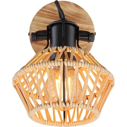 Dieser wunderschöne Strahler begeistert durch tolles Design. Aus einer runden Wandhalterung in schöner Holzoptik ragt ein schwarz mattes Gelenk zu einer E27 Fassung, bestückt mit einem Schirm aus Seilgeflechten (Ø 15,5 cm) und einem Überhang von ca. 25 cm. Die E27 Fassung überlässt Ihnen die Möglichkeit, bis zu einer maximalen Leistung von 60 Watt, selbst über Lichtfarbe und Helligkeit zu bestimmen. Durch weitere Modelle dieser Serie können Sie Ihren Wohnbereich perfekt ergänzen.