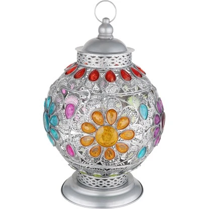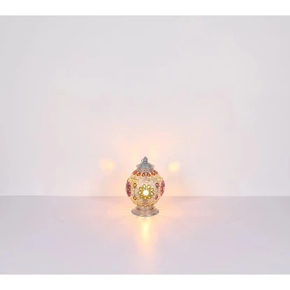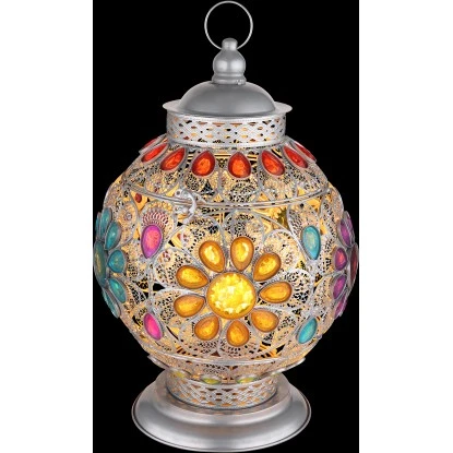 Diese farbenfrohe Tischleuchte begeistert durch tolles Design. Ein oval förmigen Metallgehäuse mit schönen Verzierungen von Acrylkristallen bedeckt eine E27 Fassung. Diese überlässt Ihnen die Möglichkeit bis zu einer maximalen Leistung von 40 Watt, selbst über Lichtfarbe und Helligkeit zu bestimmen.