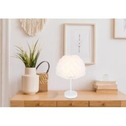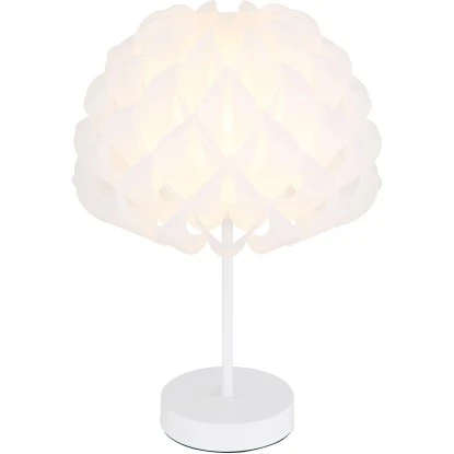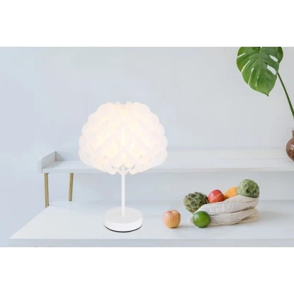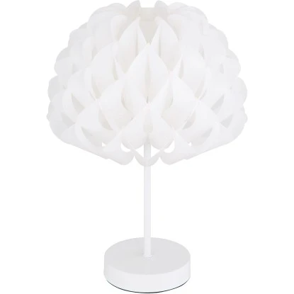 Diese dekorative Tischleuchte begeistert durch ihr schönes Design. Die Leuchte besteht aus Dekorbögen welche selbst zu einem Schirm (Ø25 cm) zusammenbaut werden um den Spaß am basteln aufrecht zu erhalten. Eine E14 Fassung ist an einer weißen 35 cm langen Stange befestigt und lässt Ihnen die Möglichkeit, über Ihr Leuchtmittel bis zu einer maximalen Leistung von 25 Watt, selbst zu bestimmen.