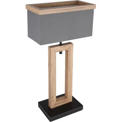 Diese wunderschöne Tischleuchte begeistert durch tolles Design. Aus einem schwarz matten rechteckigen Sockel ragt eine formschöne MDF Platte in toller Holzoptik. Die E27 LED Fassung befindet sich unter einem rechteckigen Schirm in der Farbe Anthrazit und ergänzt sich wunderbar zur Tischleuchte. Die E27 LED Fassung ermöglicht Ihnen bis zu einer maximalen Leistung von 9 Watt, selbst über Lichtfarbe und Helligkeit zu bestimmen. Durch weiter Modelle dieser Serie können Sie Ihren Wohnbereich perfekt ergänzen. Aufgrund ihrer Langlebigkeit und Stromersparnis empfehlen wir LED Leuchtmittel.