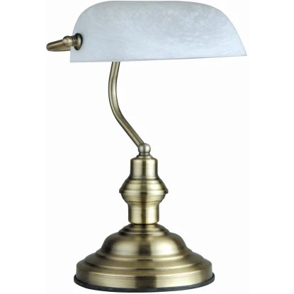 Diese Tischlampe im klassischen Banker-Stil verbindet seriöse Professionalität mit gemütlicher Wohnlichkeit. Eines ist jedoch gewiss, dieses Modell aus Altmessing wertet die Wohnatmosphäre garantiert auf. Sie ist auch energieeffizient, da man sie mit LED-Leuchtmittel nutzen kann.