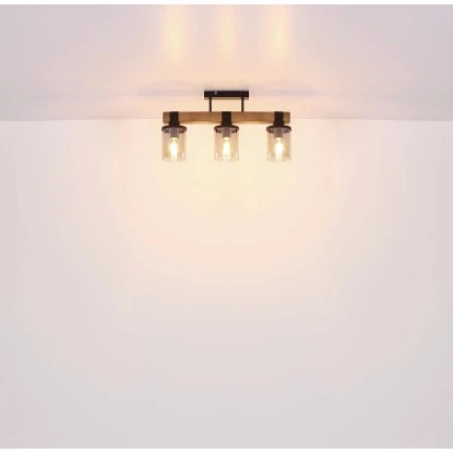 Diese schöne Wandleuchte begeistert durch tolles Design aus Holz und schwarzen Metall. Aus einer quadratischen schwarz matten Wandbefestigung ragt ein 17 cm langer Holzstamm, an dem sich eine E27 Fassung mit einem rauchfarbenen zylinderförmigen Glasschirm überdeckt wird. Die E27 Fassung ermöglicht Ihnen bis zu einer maximalen Leistung von 60 Watt, selbst über Lichtfarbe und Helligkeit zu bestimmen.